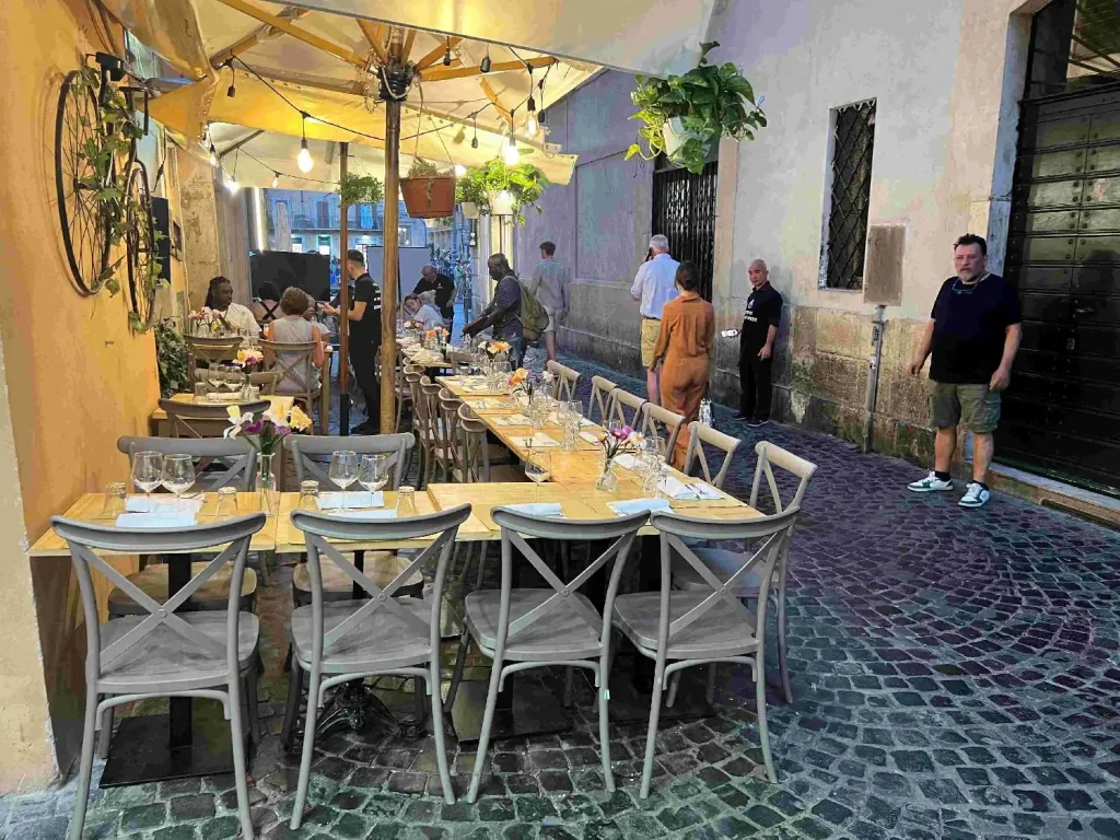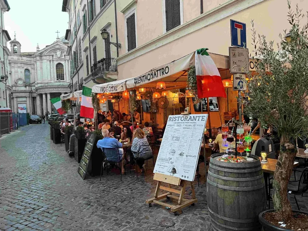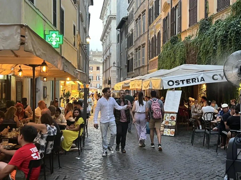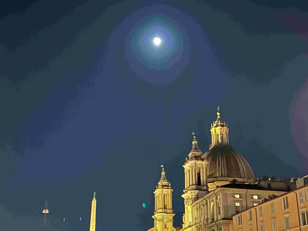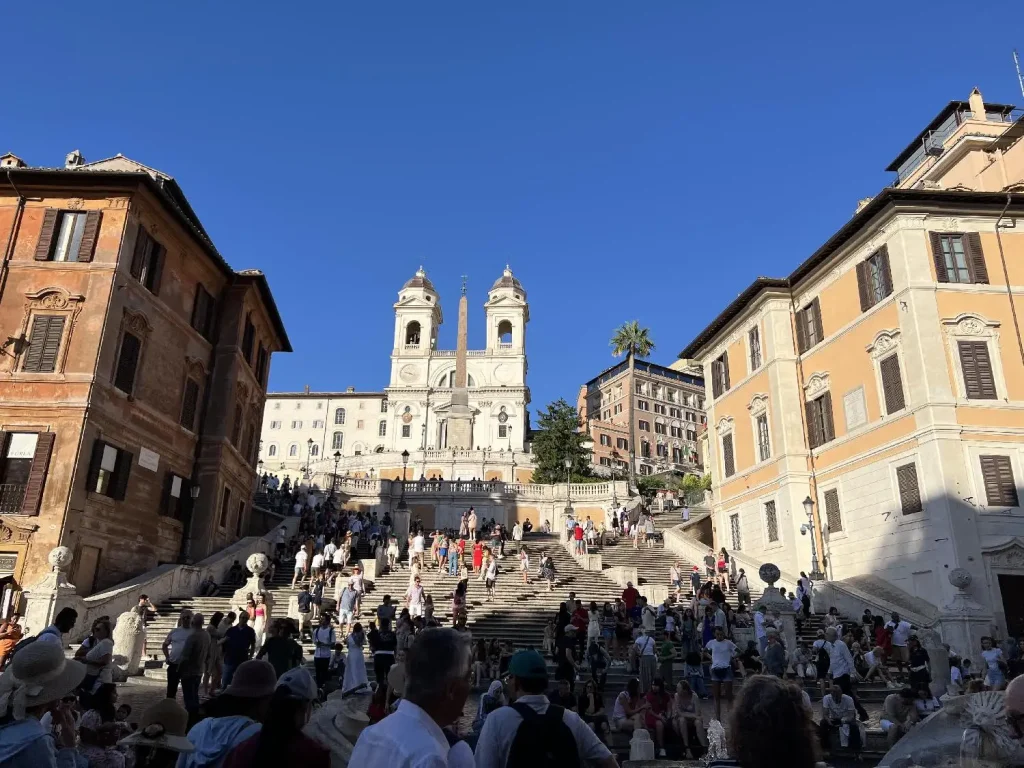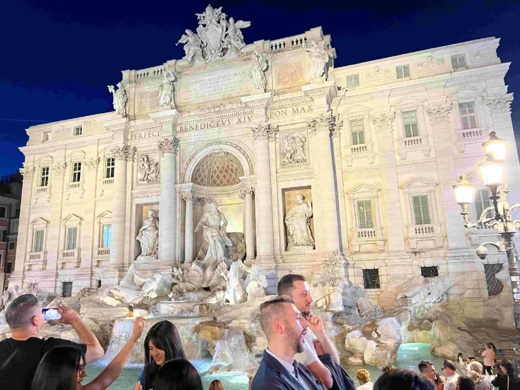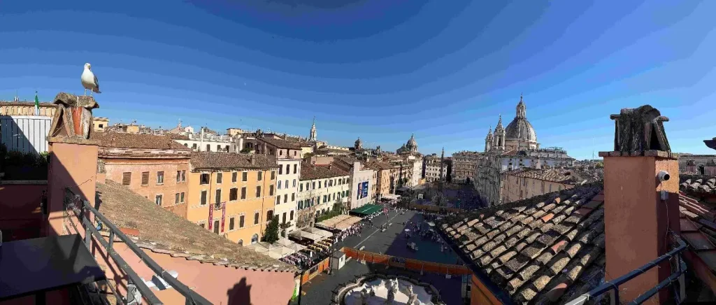 • ローマ・ナヴォーナ広場(噴水が改装中)に面したホテル(改装中で割引)に宿泊、1泊ひと部屋10万円屋上のレストランが気持ち良かった。トレビの泉人が多かった。
